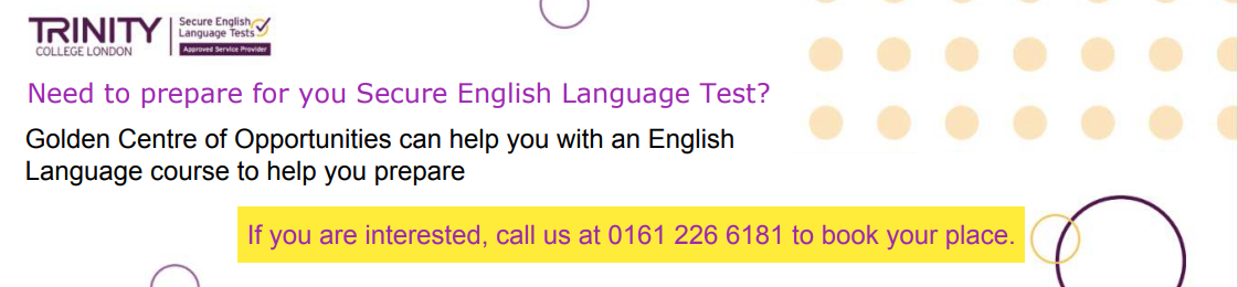 We support you in finding employment, please call Golden Centre of Opportunities on 01612266181